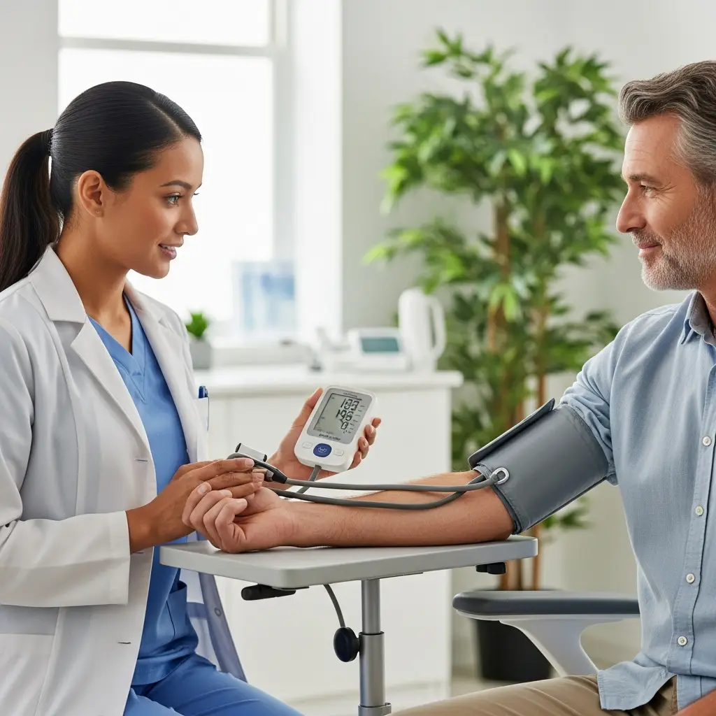 Servicio rápido de control de presión arterial con informe para seguimiento médico.