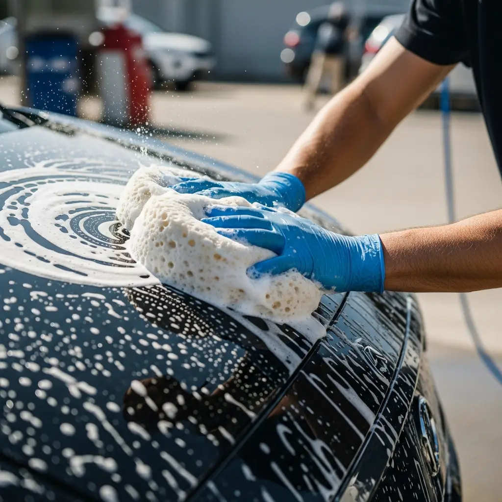 Lavado manual de carrocería, aspirado interior y limpieza de tapicería ligera.