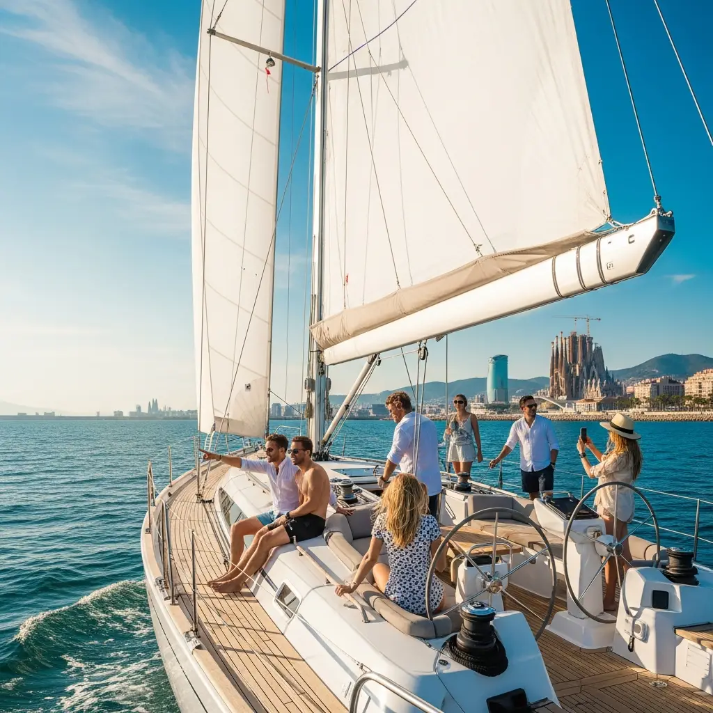 Recorrido en barco por la costa de Barcelona, vista panorámica de la ciudad.