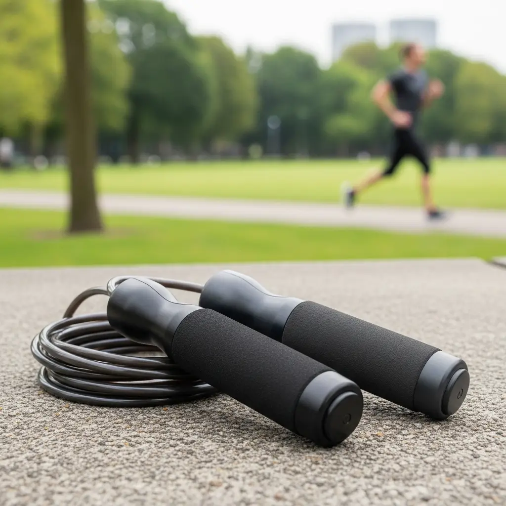 Soga ligera ajustable con mangos ergonómicos, perfecta para cardio en casa.